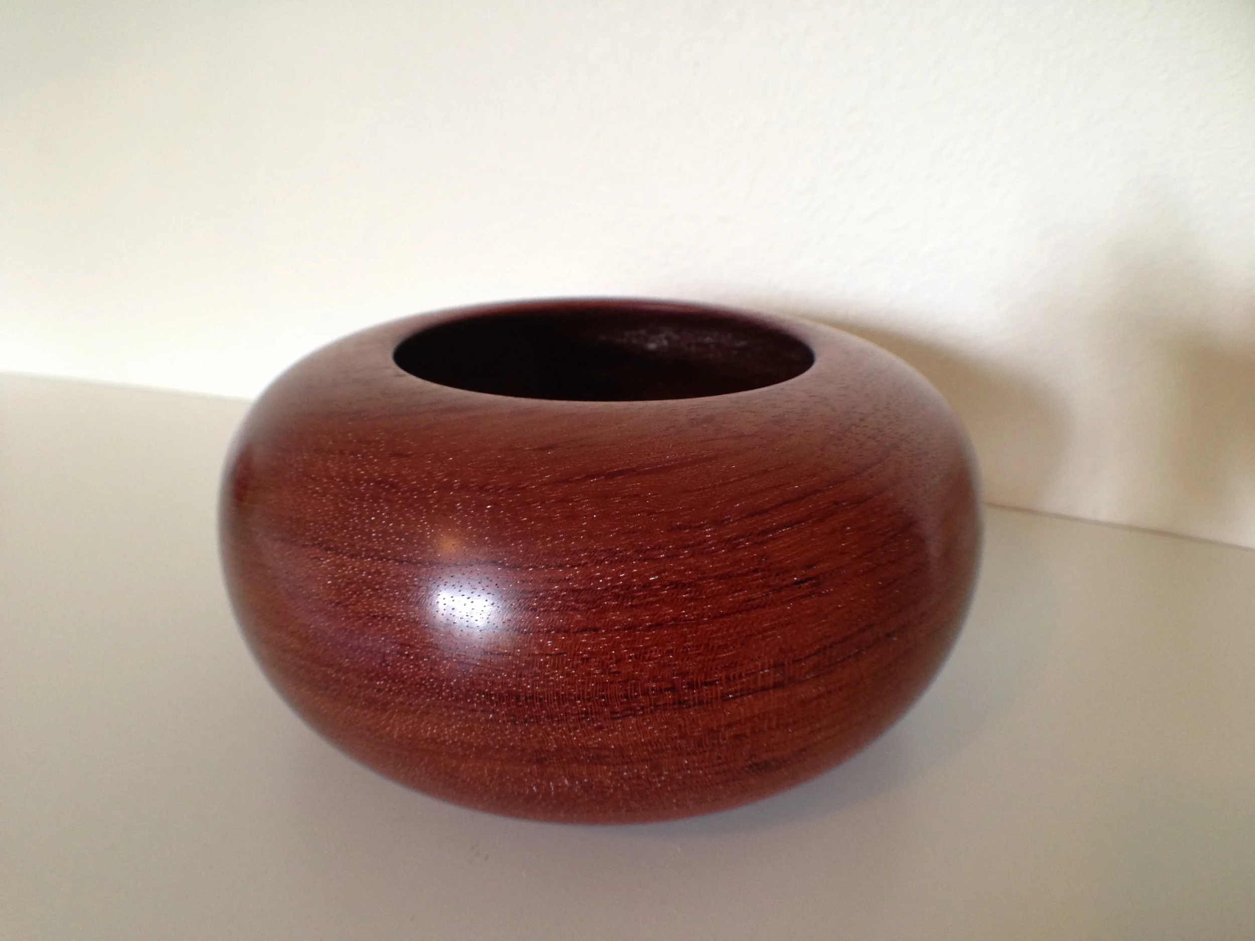 This is the first segmented bowl that Dave turned. It is made of birch, cherry, and walnut. The 9" x 8" bowl is made out of 241 pieces.